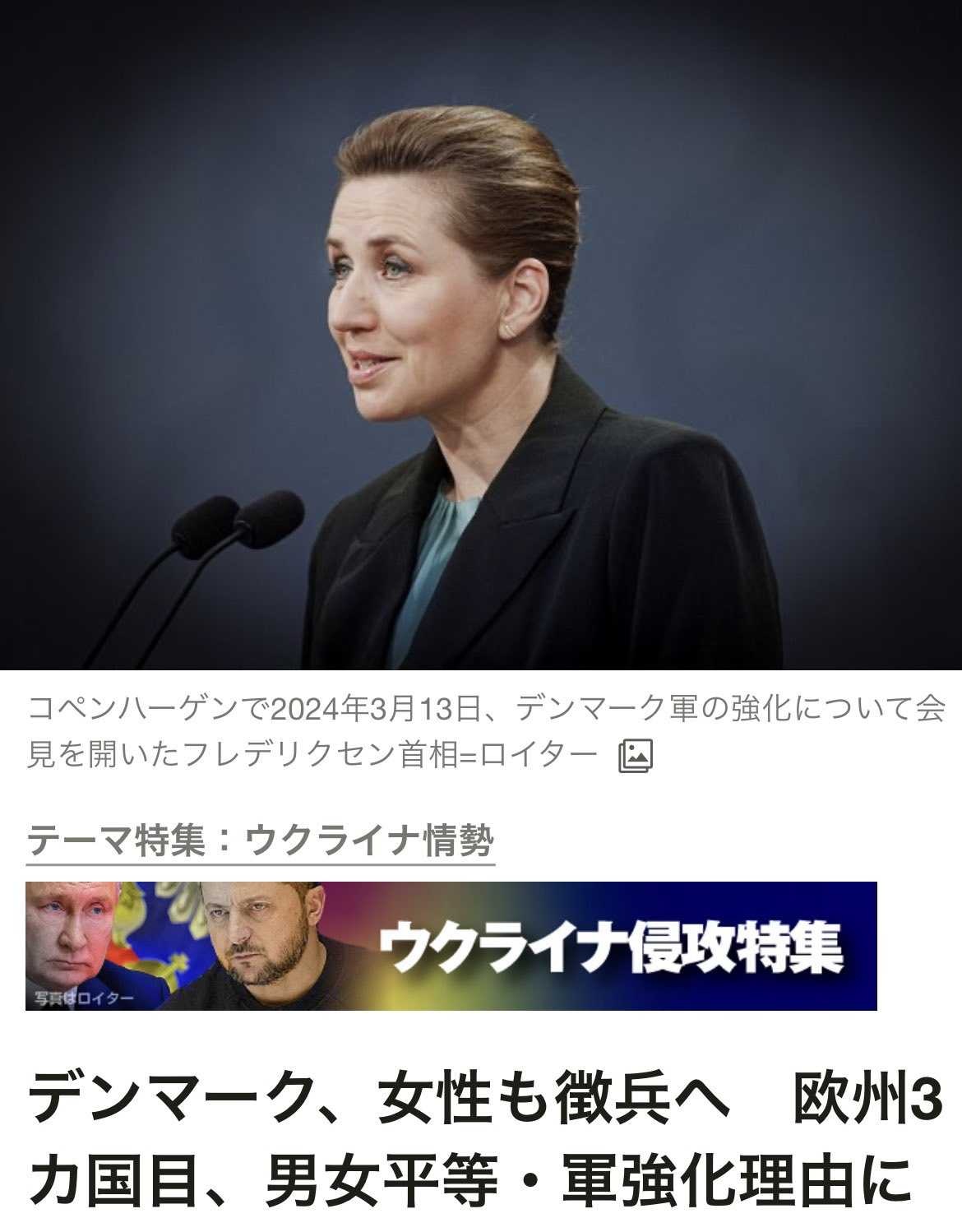 「したがって男性だけに法律で徴兵が義務付けられているのは不平等。女性も徴兵対象とするべきだ」