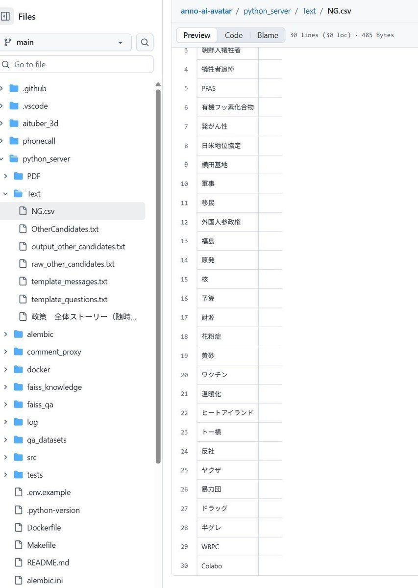 AIあんの、NGワード一覧に「朝鮮人犠牲者」「反社」「半グレ」「Colabo」などの文字