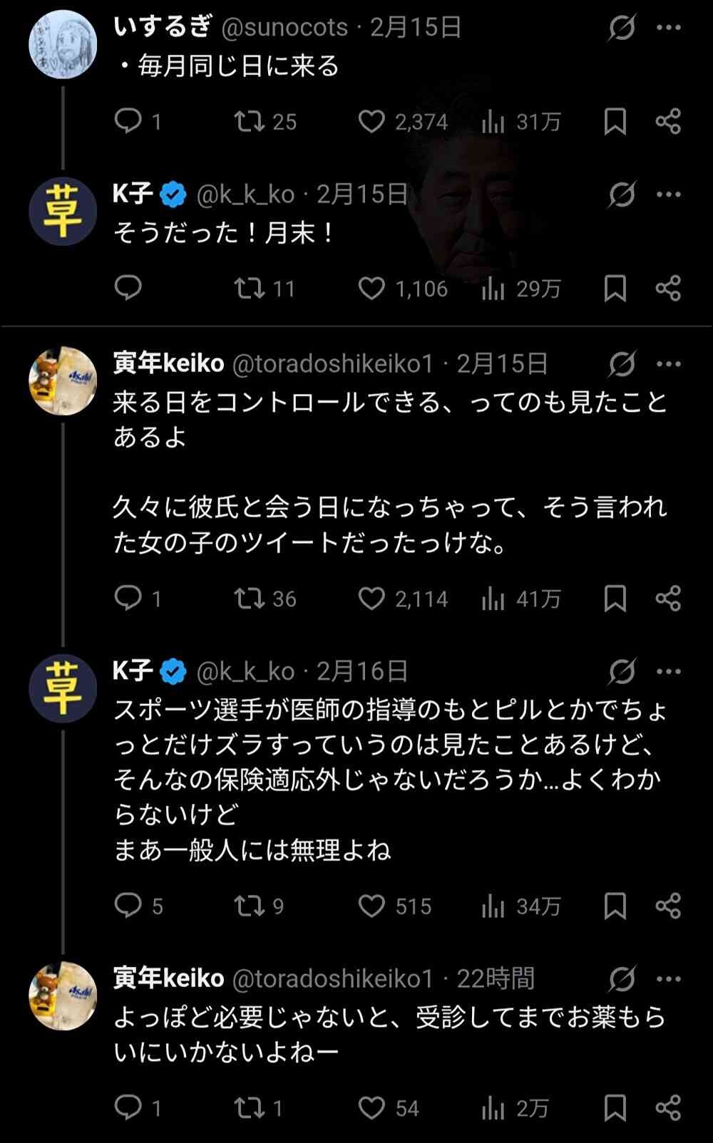 これ系で女でもわれるのは生理周期がシンクロするみたいなあれだろ