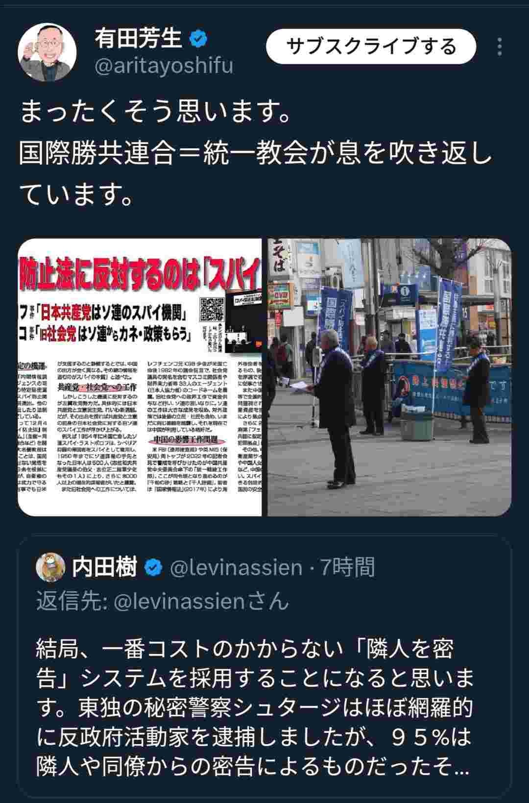 統一、国際勝共連合からはその3党以外は「味方」と認識してるのはガチっぽいですね