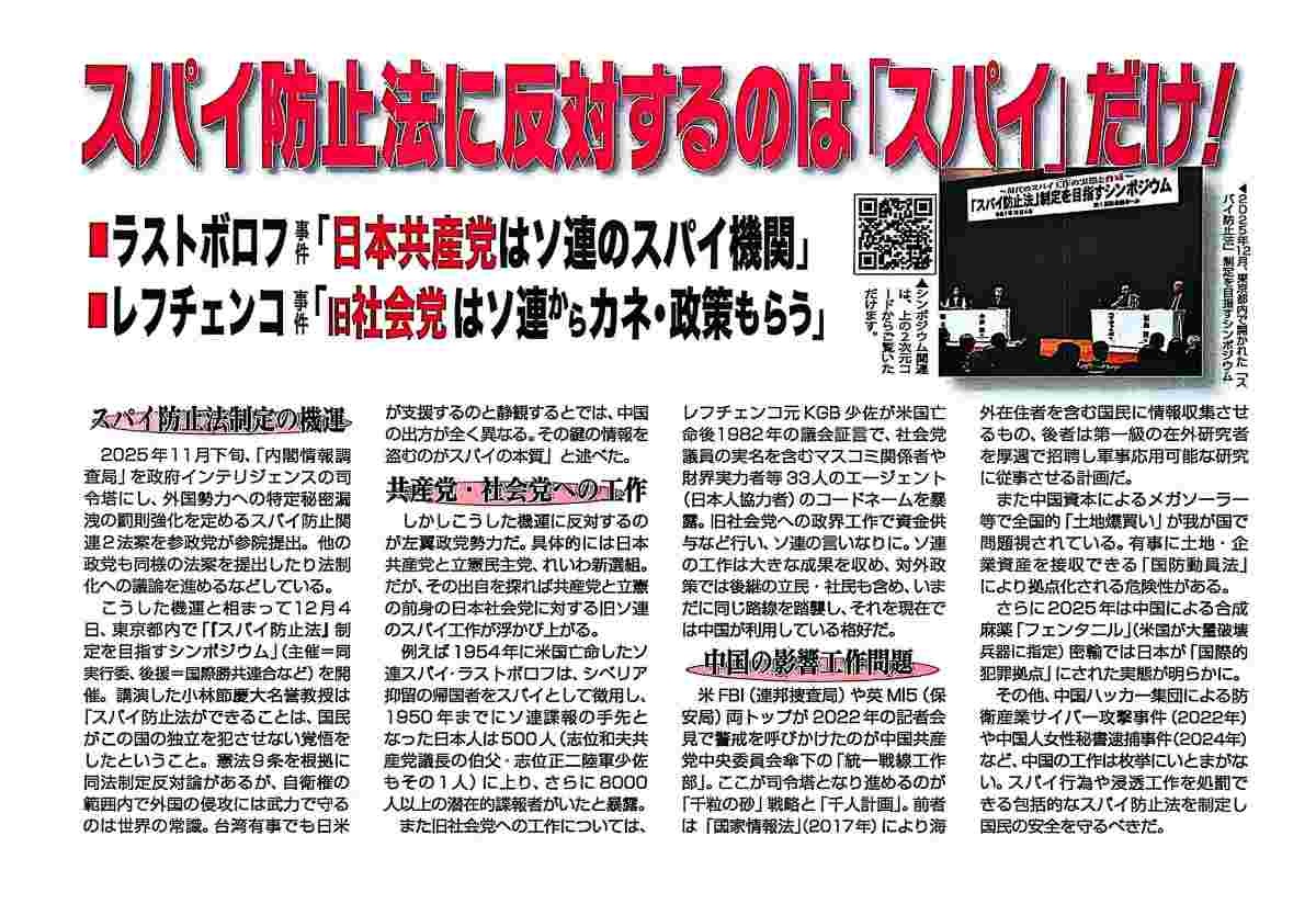 スパイなら任務遂行のためにスパイ防止法に賛成するだろ
