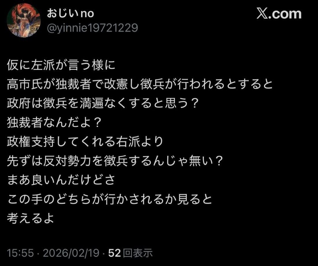 そもそも徴兵したところで反高市が