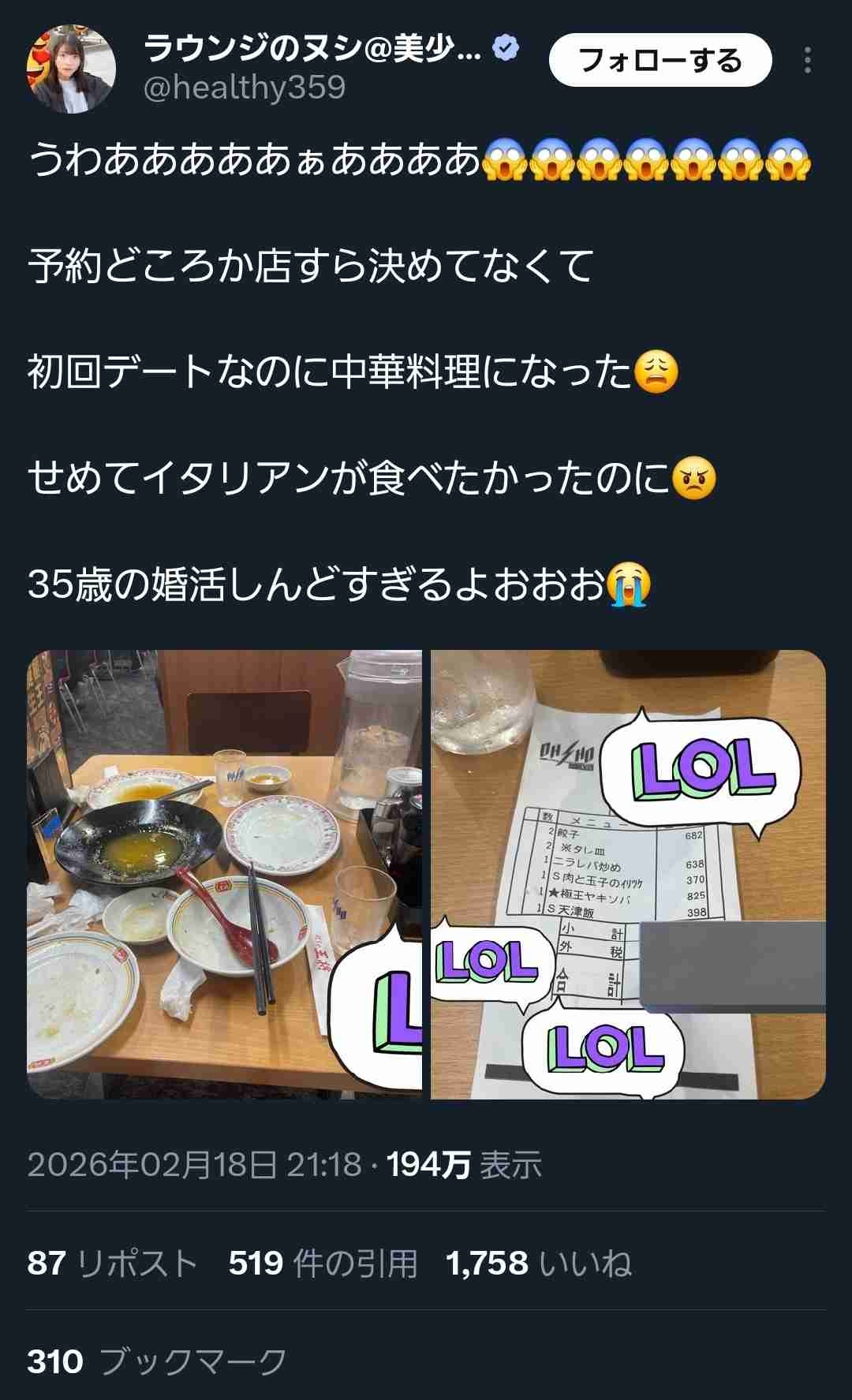 流石に初回王将は無いと思うけど、自分で提案するとか食っておいて文句言うとかテーブル汚いわ、こいつにも原因あるだろ
