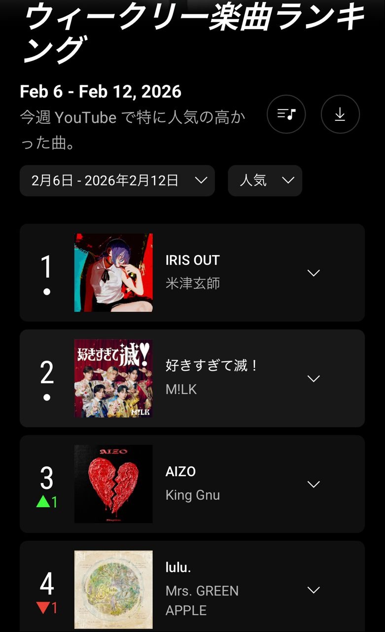 どの音楽チャートも上位席巻してる模様
