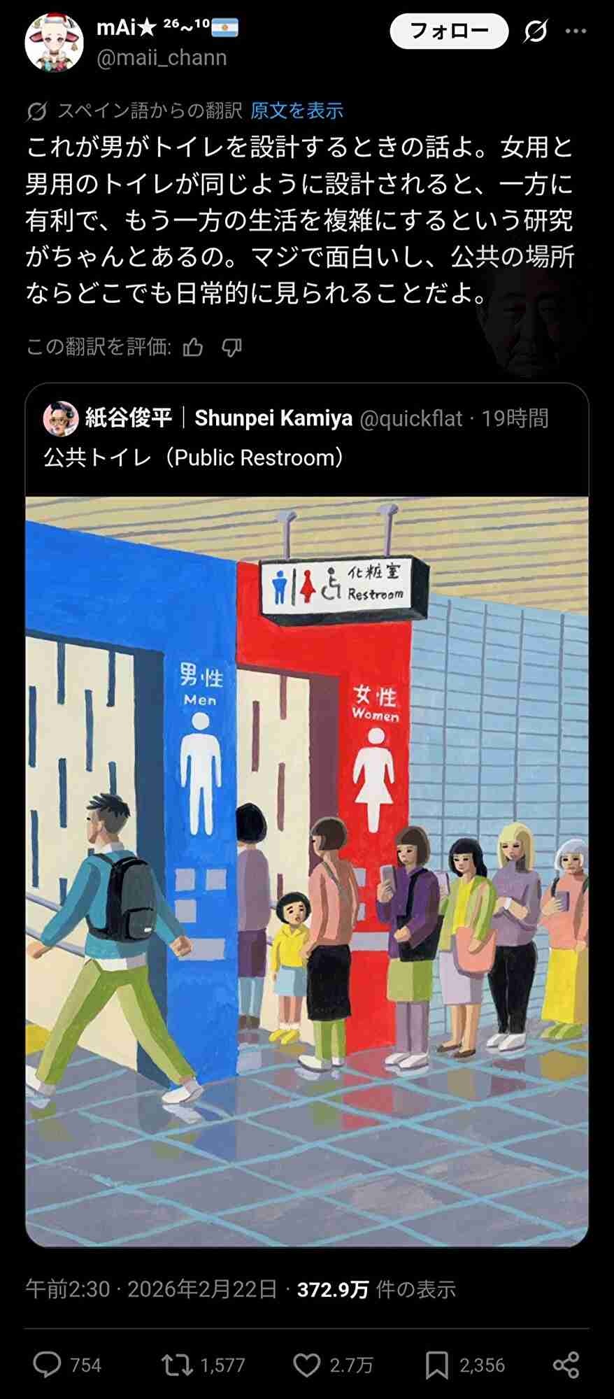 なんで男用と女用を同じように設計すると片方が有利な作りになるんや…?