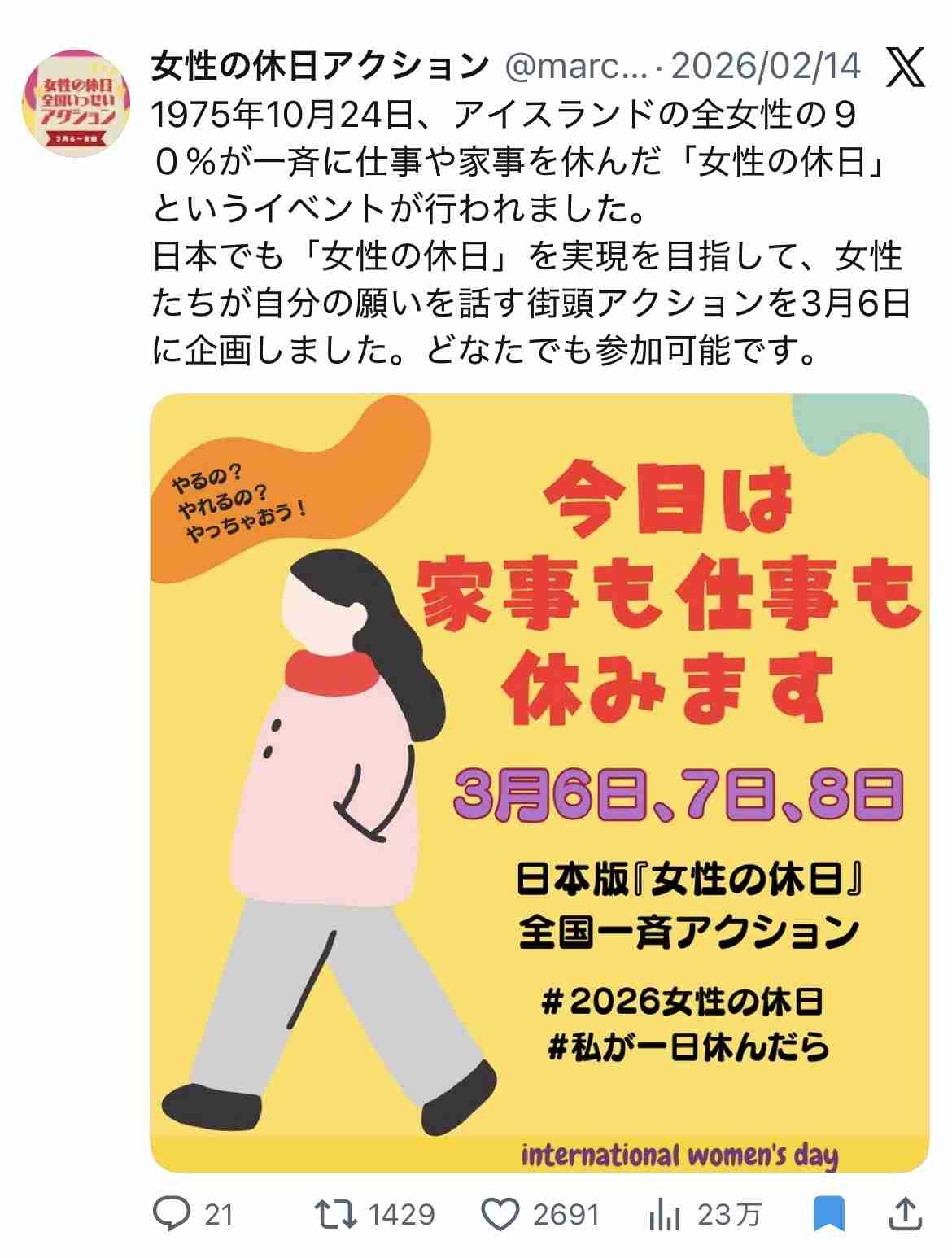 家事労働中心の時代なら分かるけど今やってもただ有給取った人になるだけだろ