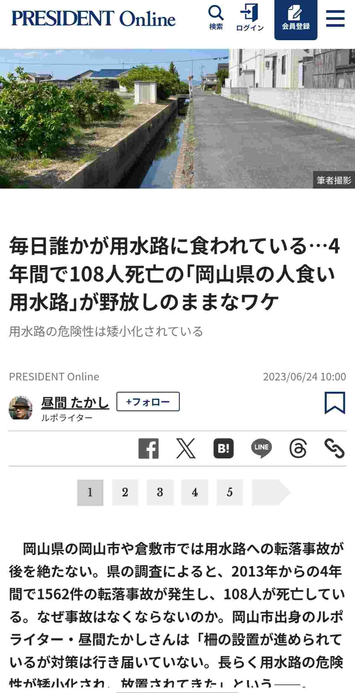 これ前に岡山役所の人間に聞いたら「用水路が口開けて襲うわけじゃないですからねw」って笑ってた記事あったろ