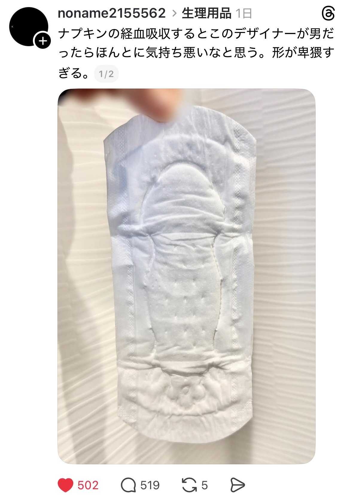 女性「生理用ナプキンの形が卑猥すぎる。男がデザインしてたら本当に気持ち悪い!!!」