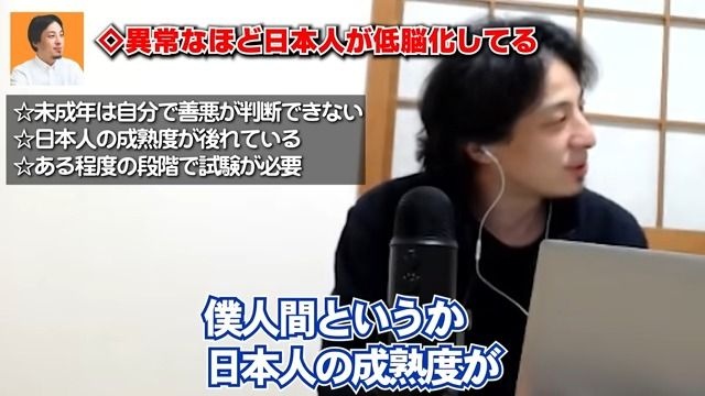 ただこれ言うと怒られるかもしれんが成人試験を導入して人として成熟した人間に権利を与えるとなるとひろゆきさんや成田悠輔さんやアベマの人たち全員不合格にならんか?