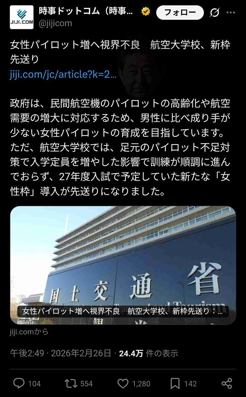 パイロット不足解消とか言ってるけど女性枠の分だけ一般枠減らす案だからね