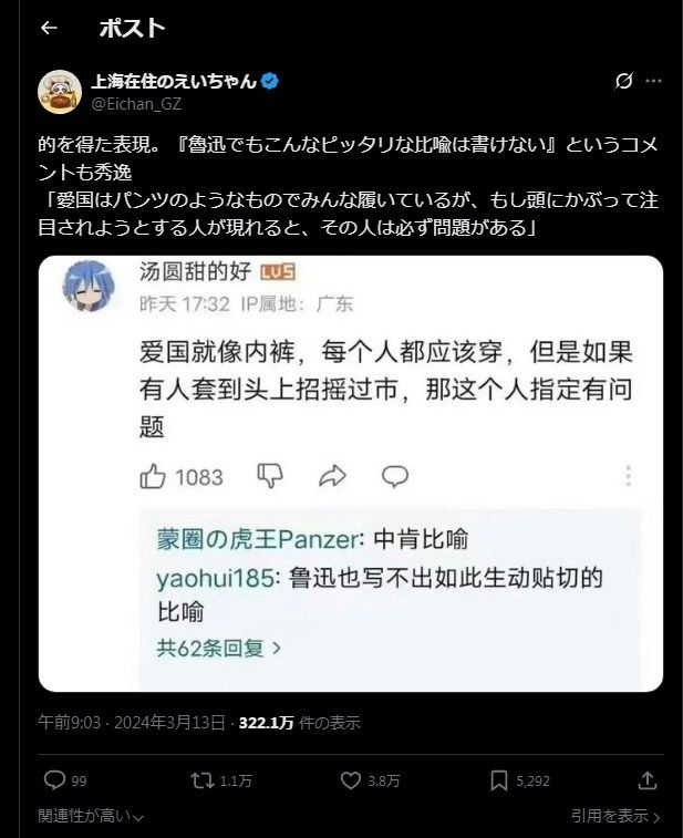 一日中パンツの話をしていて時にパンツで発狂している自称愛国者