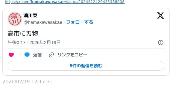 常葉大の浜川栄教授が首相を「高鬱と呼ぼう」 大学側「誹謗中傷投稿を確認、厳正に対処」常葉大(静岡市)の浜川栄教授がX(旧ツイッター)で、高市早苗首相について「高鬱とか鬱市と呼ぼう」と投稿した。大学は26日、ホームページで「本学教員のSNSへの…www.sankei.com