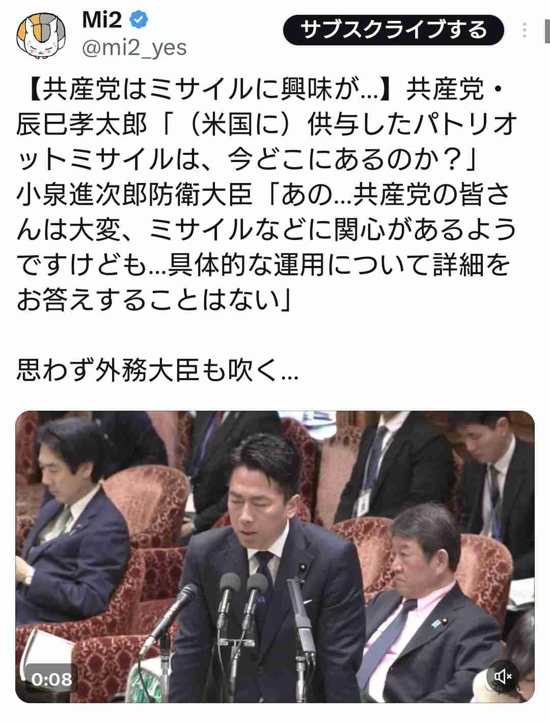日本共産党「米国に供与したパトリオットミサイルは今どこにあるんだ」→小泉進次郎・防衛大臣「😳??」