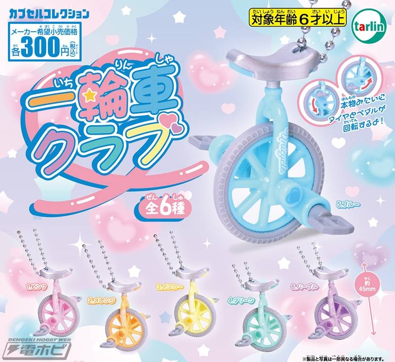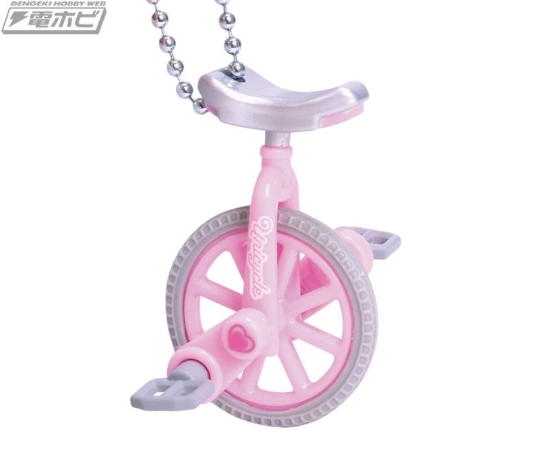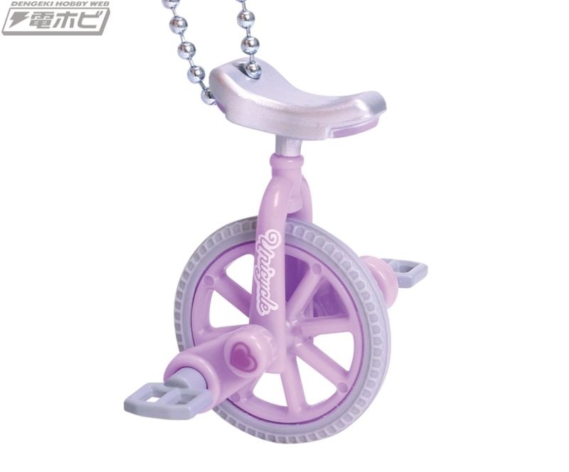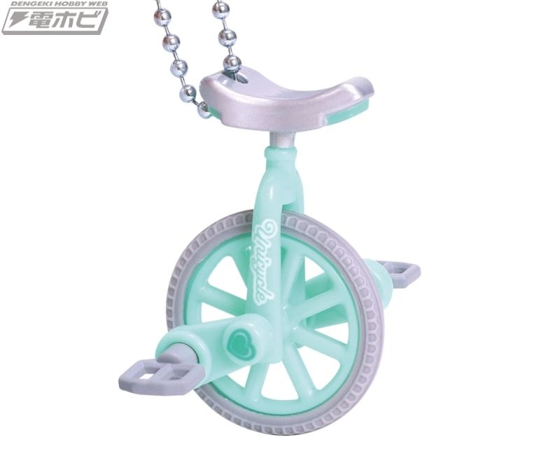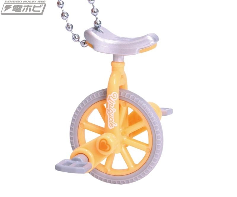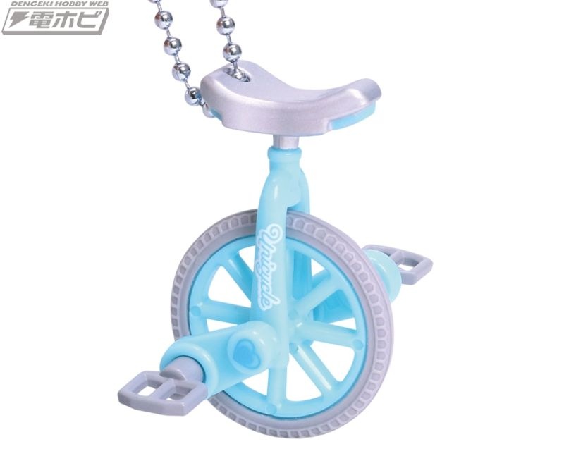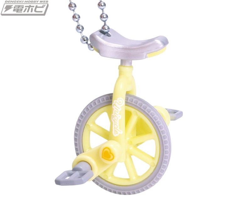 ターリン・インターナショナルのカプセルトイに一輪車のミニチュアモデルが登場! ボールチェーン付きのスイングアイテムで、本物みたいにタイヤとペダルが回転します!