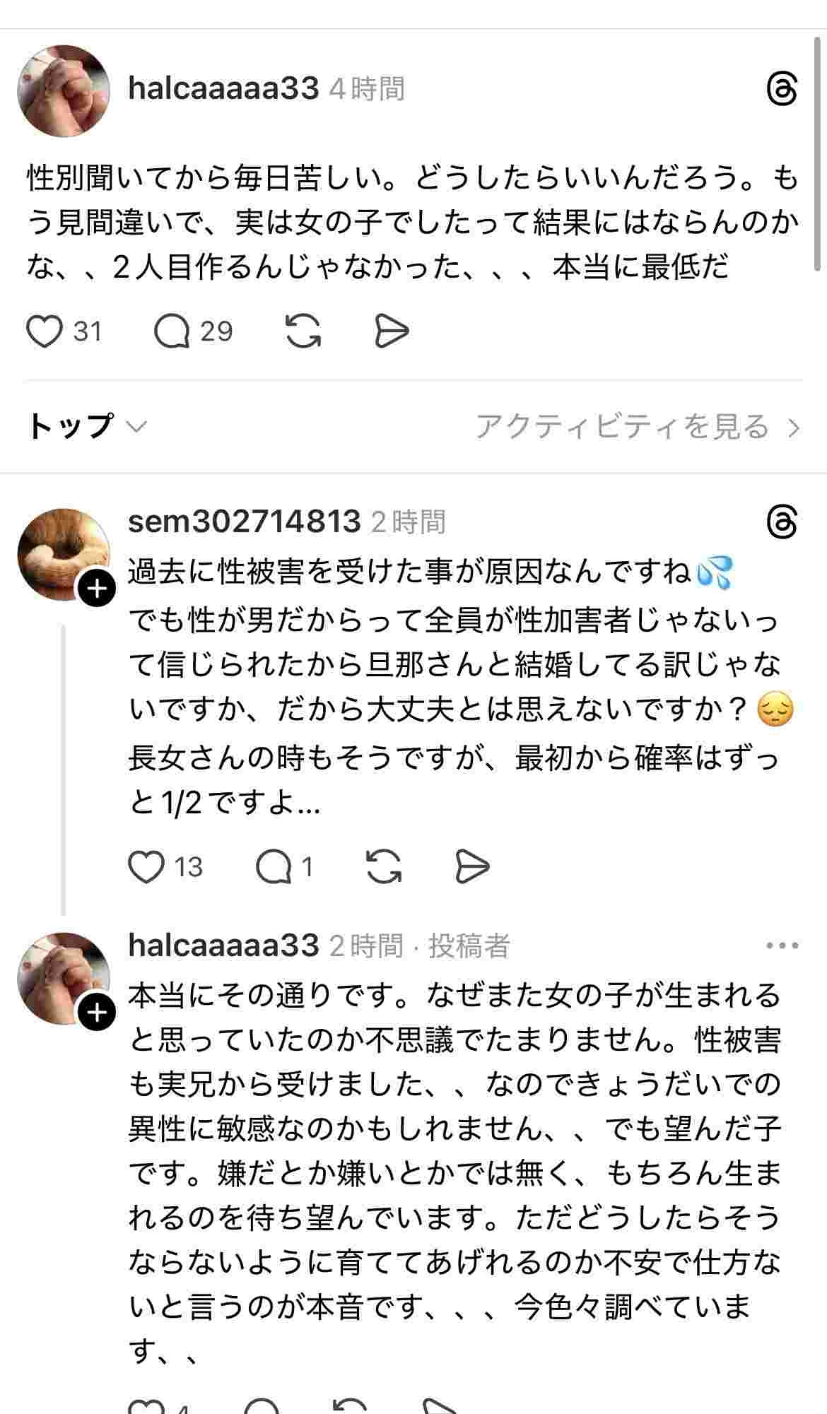 男児さん、ママを苦しめてしまう…「お腹の子、女の子だと思ったら男の子だった…性別聞いてから毎日苦しい…」