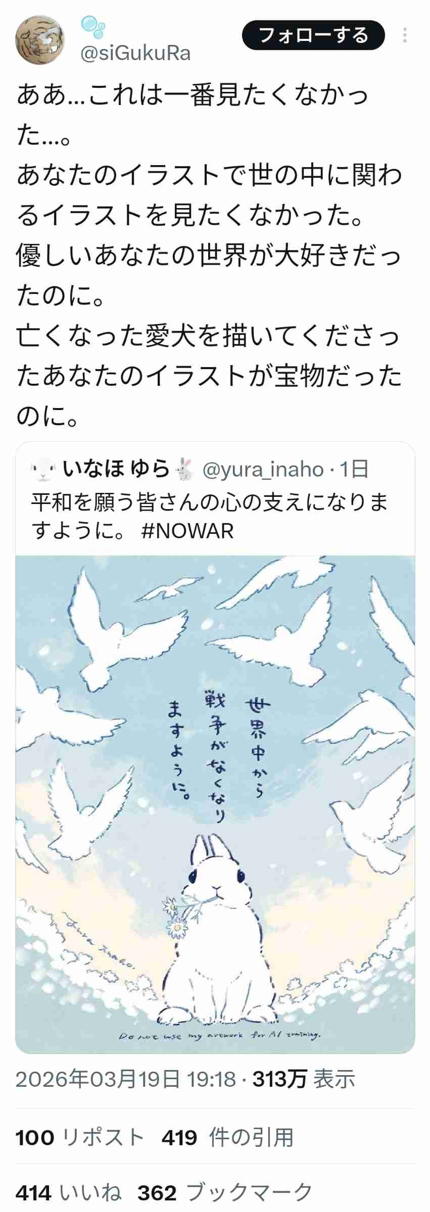 世界平和を願うと酷く傷付く人がいるんですね?🤔