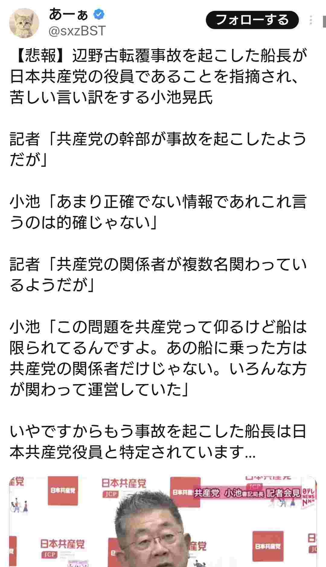 普段からパヨク4ねパヨ4ね呪ってるネトウヨに呪い殺されたんだよ船長諸共