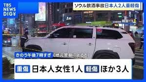 韓国ソウルで乗用車が歩道に突っ込み4人はねられる 日本人女性1人が重傷 飲酒運転の疑いで50代男逮捕