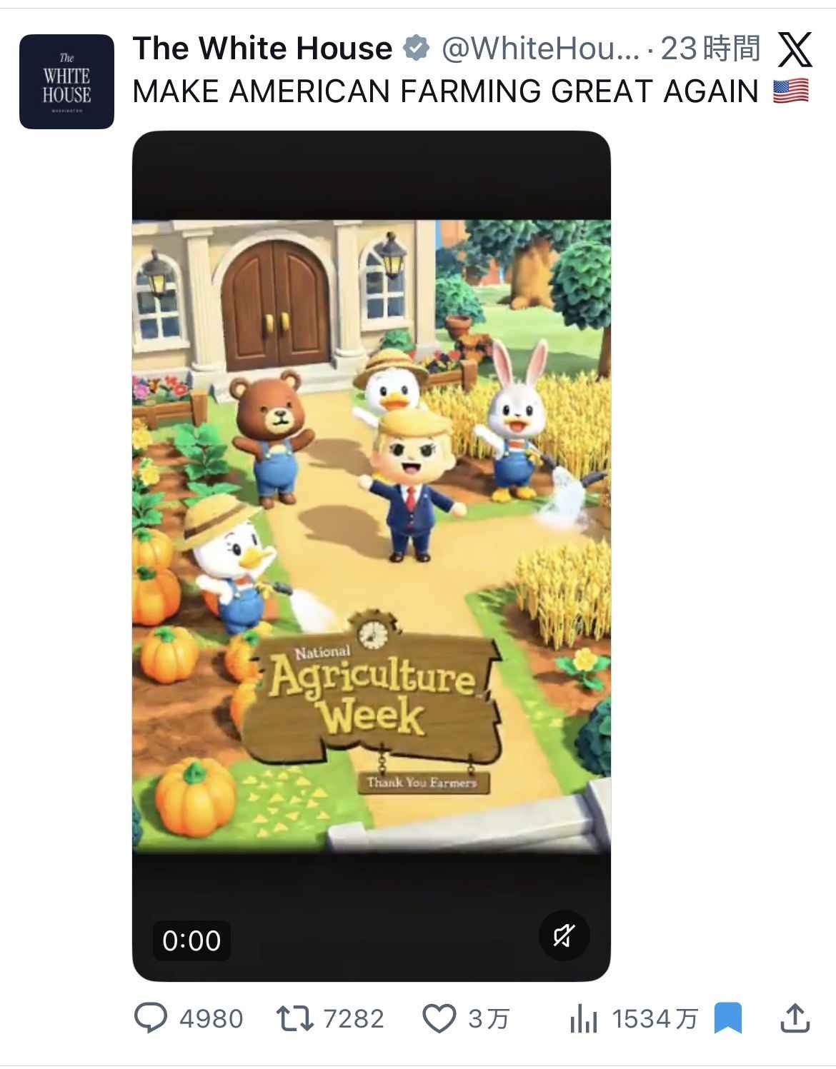 ホワイトハウス、ジャップオタクに対しての挑発が止まらない…今度はどうぶつの森に酷似したAI動画でプロパガンダ
