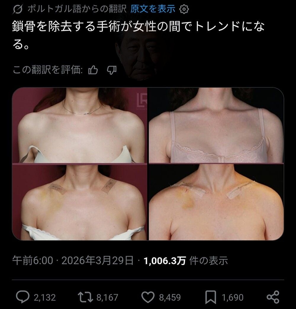 Twitterで流しまくれば一瞬で鎖骨=醜いって価値観になるだろうな