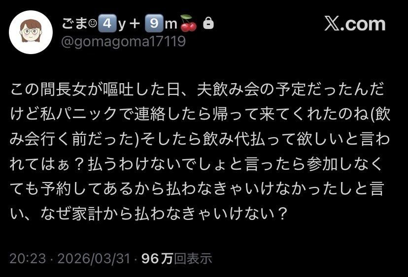 会社の飲み会もそういう事情ならみんなで負担してあげなよって思う
