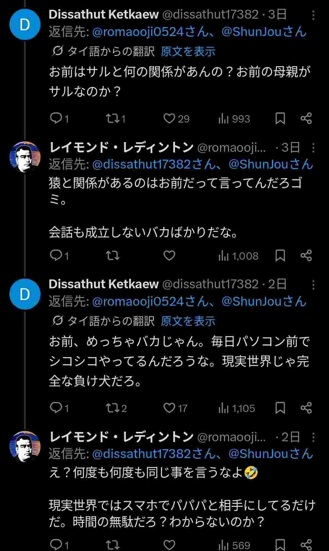 まあタイ人は英語も日本語も使えるのにネトウヨは日本語すらまともに使えないからな