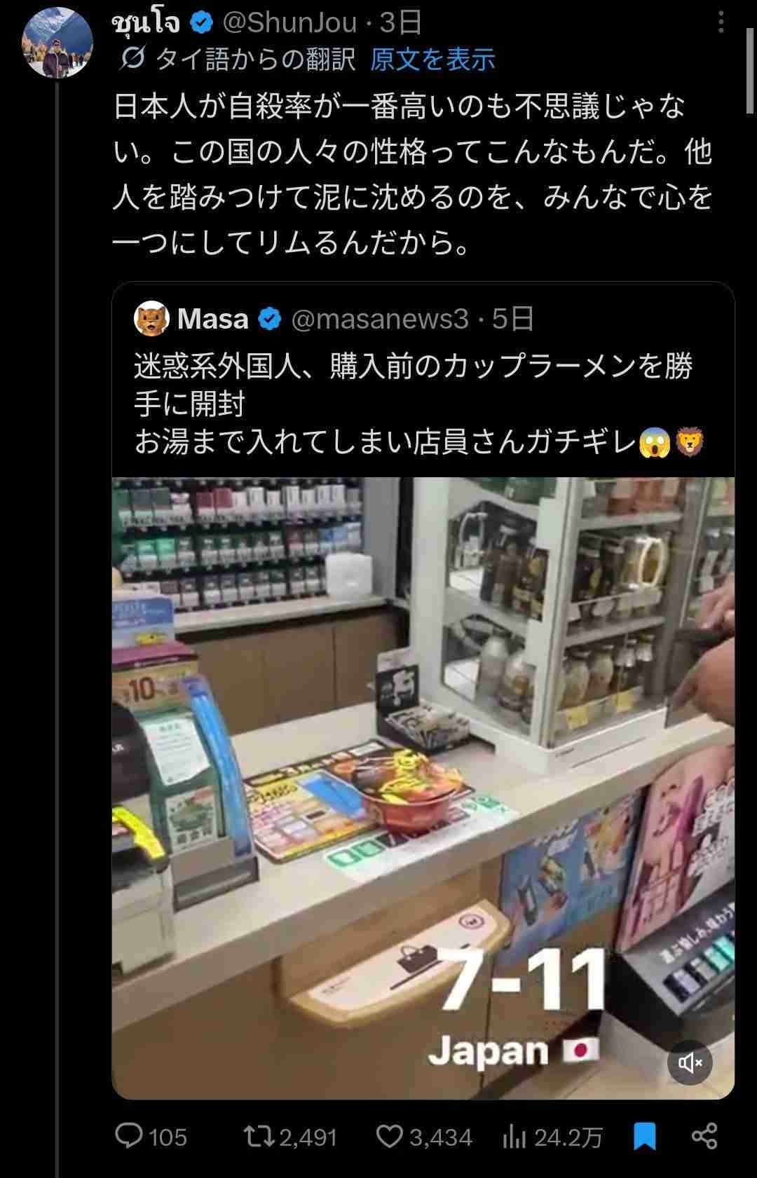 買う前にお湯入れて買うのが批判されないタイもすごいな