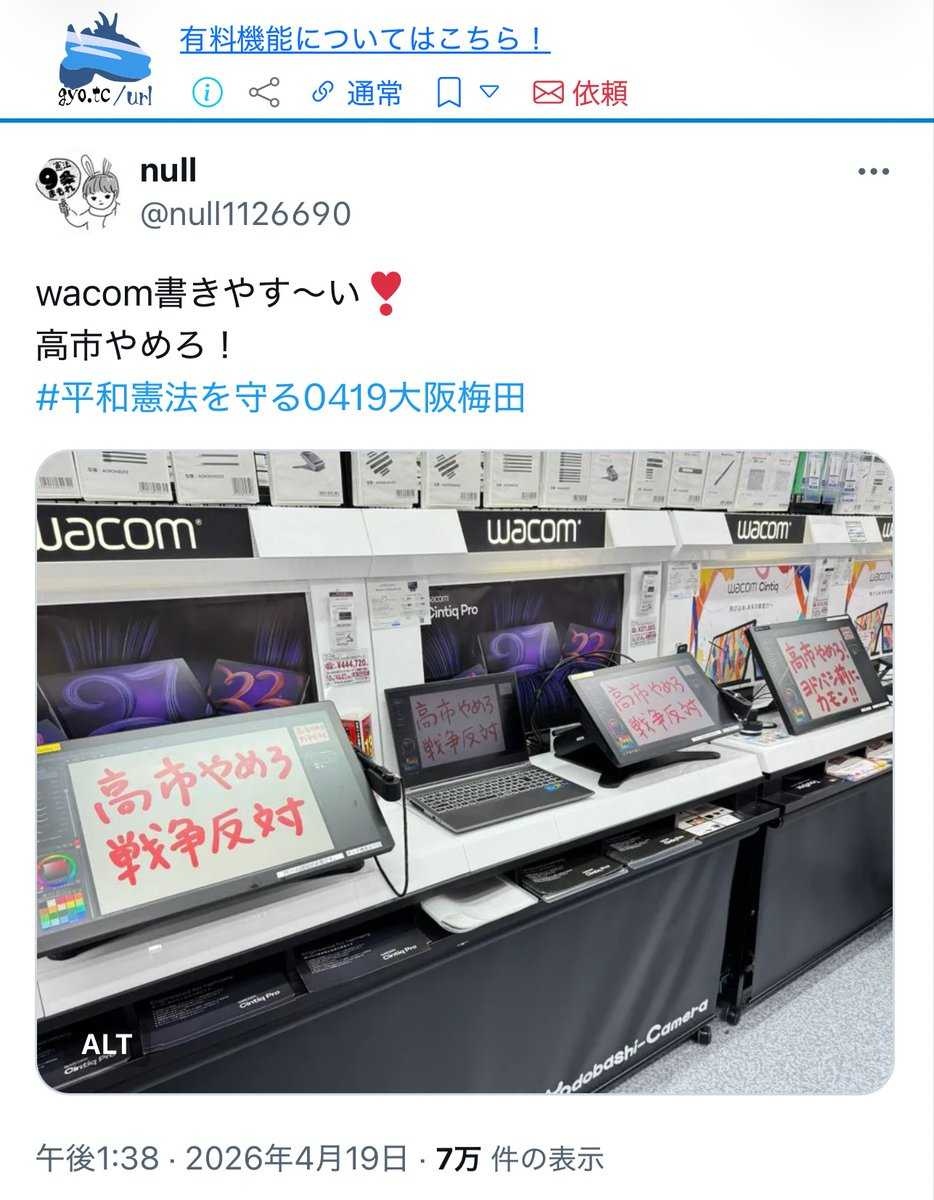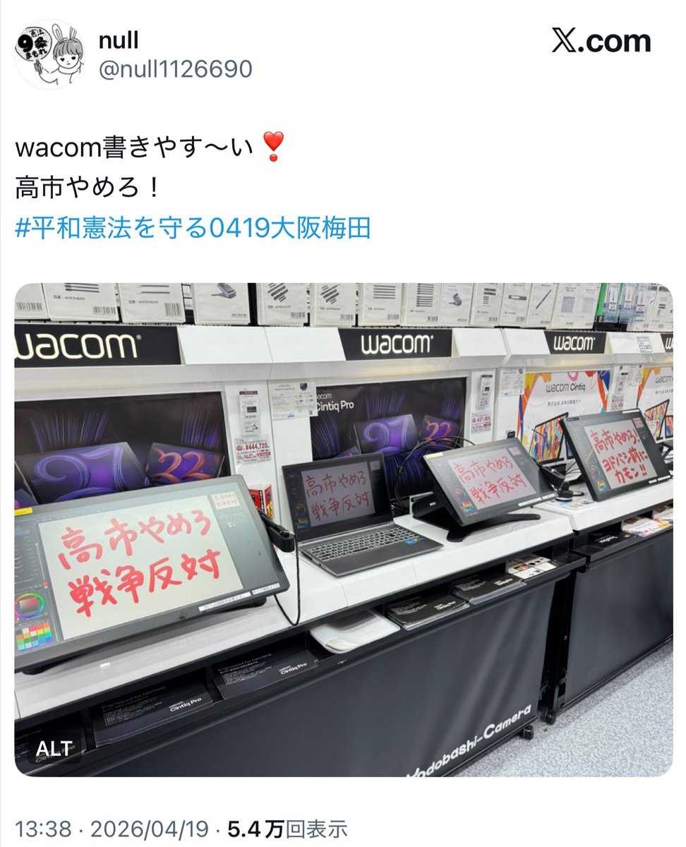 反高市派だけどこういう行動は気色悪いわ 電気屋の体裁も考えろや