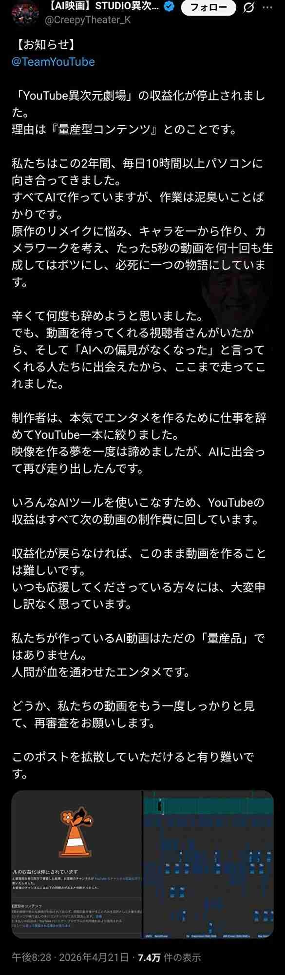 YoutubeはAIで儲けるの禁止にしてしまうんだろ
