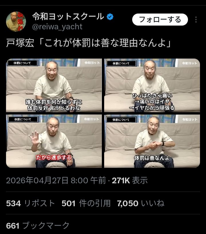 この爺さんどの層に体罰が必要なのか説明省くから誤解されてる感じなん?
