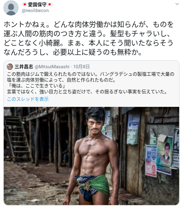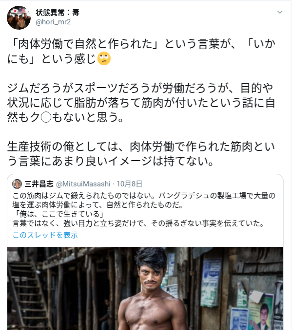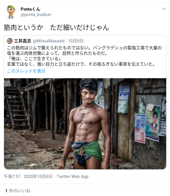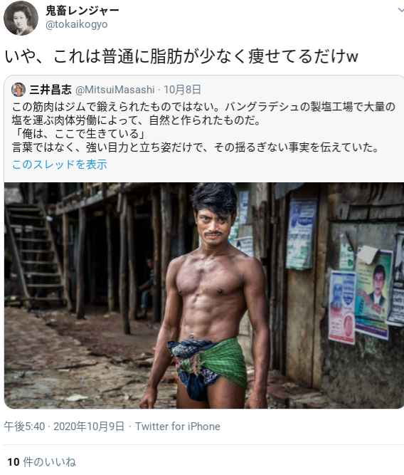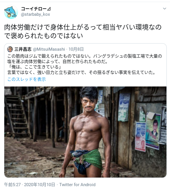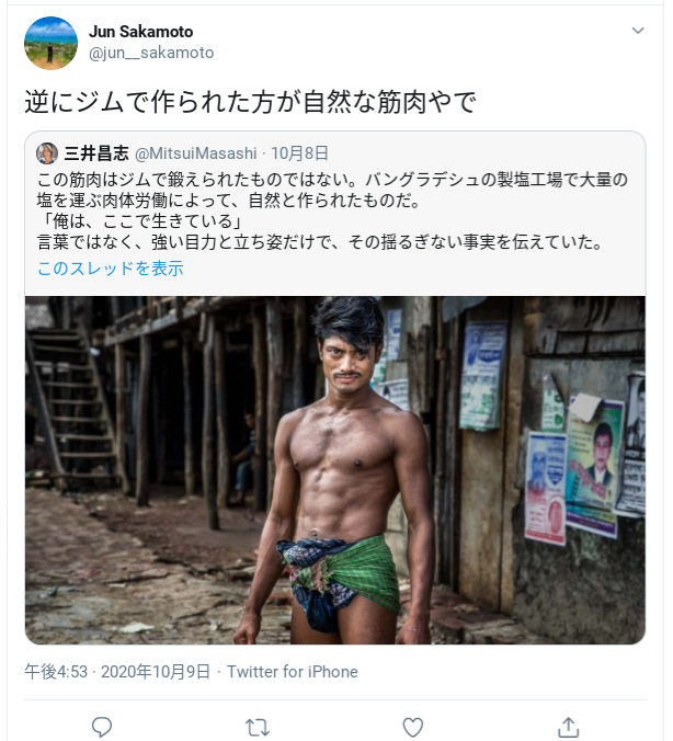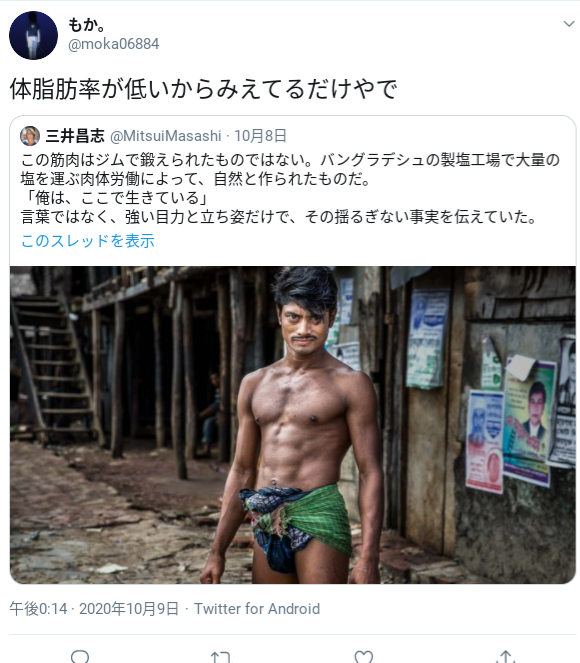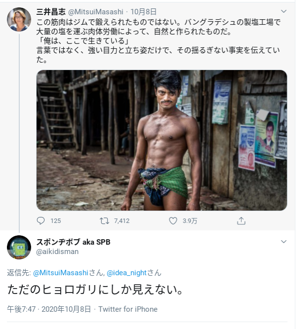 写真家への突っ込みじゃなく筋肉への突っ込みなのがネッチョらしい - 28 : 2020/10/30(金) 23:37:03.93 ID:lxLHJ/8h0