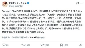 なんG 女性ユーザー「Geminiって能力はあるけど発言で損してる嫌われる30代男性っぽい。」