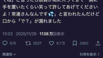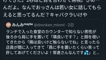 嫌儲 食堂で「隣良いです?」と女性の肩をポンと触った♂、セクハラだと大炎上🔥