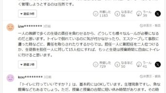嫌儲 生徒「トイレに行っていいですか?」識者「日本の学校では生理現象を申告させられる。海外で名物になってる🤓」