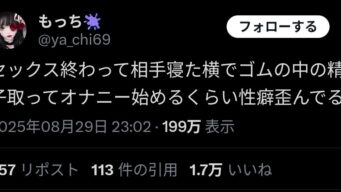 嫌儲 女、セクロスしたあとのコンドームに溜まった精子でオ●ニーを始める