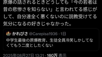 嫌儲 若者「授業で原爆の話って何の意味あるの?うちら全く悪くないのに何で説教されなきゃいけないの?」