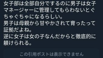 VIP 女さん「運動部に女子マネいるのは男子だけ、つまり男子は甘やかされて育ってる証拠」→万バズしてしまう…