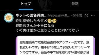 嫌儲 アラフォーまんさん「結婚相談…意見欲しいです🥺」識者「絶対ダメ!!!」