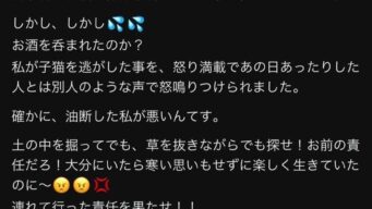 なんG まんさん、譲渡してもらった猫を逃してしまい貰った相手にブチ切れられる