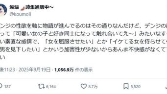 嫌儲 女オタク「チェンソーマンのデンジの性欲は加害性がなくて素晴らしい」→男オタク、ブチギレwww