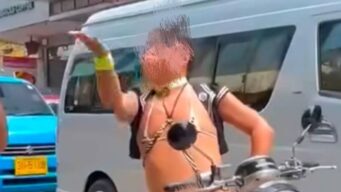 嫌儲 【恥】胸にはビキニ、下半身は全裸とアタシコな格好をしながらバイクを運転した日本人まんさんをタイで逮捕