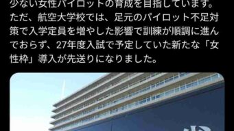 嫌儲 日本、航空機パイロットの女子枠導入検討・理数試験緩和の方針。世界トップ女性10%めざす