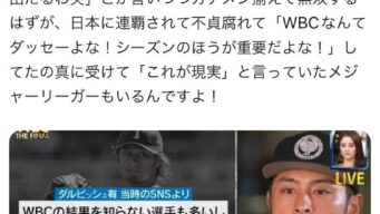 なんG ダルビッシュさん、過去の恥ずかしいWBC批判が晒されてしまう