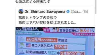 嫌儲 なるくん「高市がトランプの滅茶苦茶な要求を飲んだって左翼が騒いでるけどそれお前らの石破による約束な」