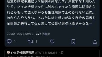 嫌儲 おっさん「朝立ちのせいで電車の中でも勃起しっぱなしで痴漢に間違われそう。男はみんなそう思ってる」→こいつ女だろと総ツッコミ