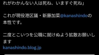 嫌儲 現役港区議「支那チョン」「朝鮮人は私に話しかけないで」「私はかわいいからなんでも許されるの!わかんないなら4ね」