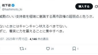 なんG 橋下徹「一部の極右を意識しすぎる高市は危険。力を持たずに吠えるのではなく力を蓄えよう」炎上