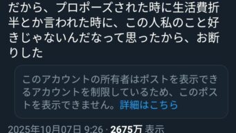 VIP 女さん「生活費を折半にする男は論外」→9万いいね!