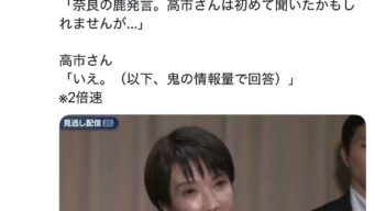 嫌儲 高市さん、鹿さんについて無礼な質問をする記者にガチギレ。鹿さんを一生懸命長い時間をかけて擁護して外国人批判をする