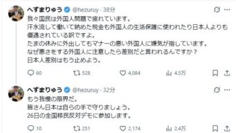 嫌儲 へずまりゅう「我々国民は外国人問題で疲れています。悪さをする外国人に注意したら差別?日本人差別はもう止めよう